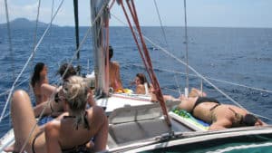 נופים קסומים מהיאכטה המפרשית בזמן השקיעה. לשחות, להירגע, ליהנות ולעשות המון תמונות!